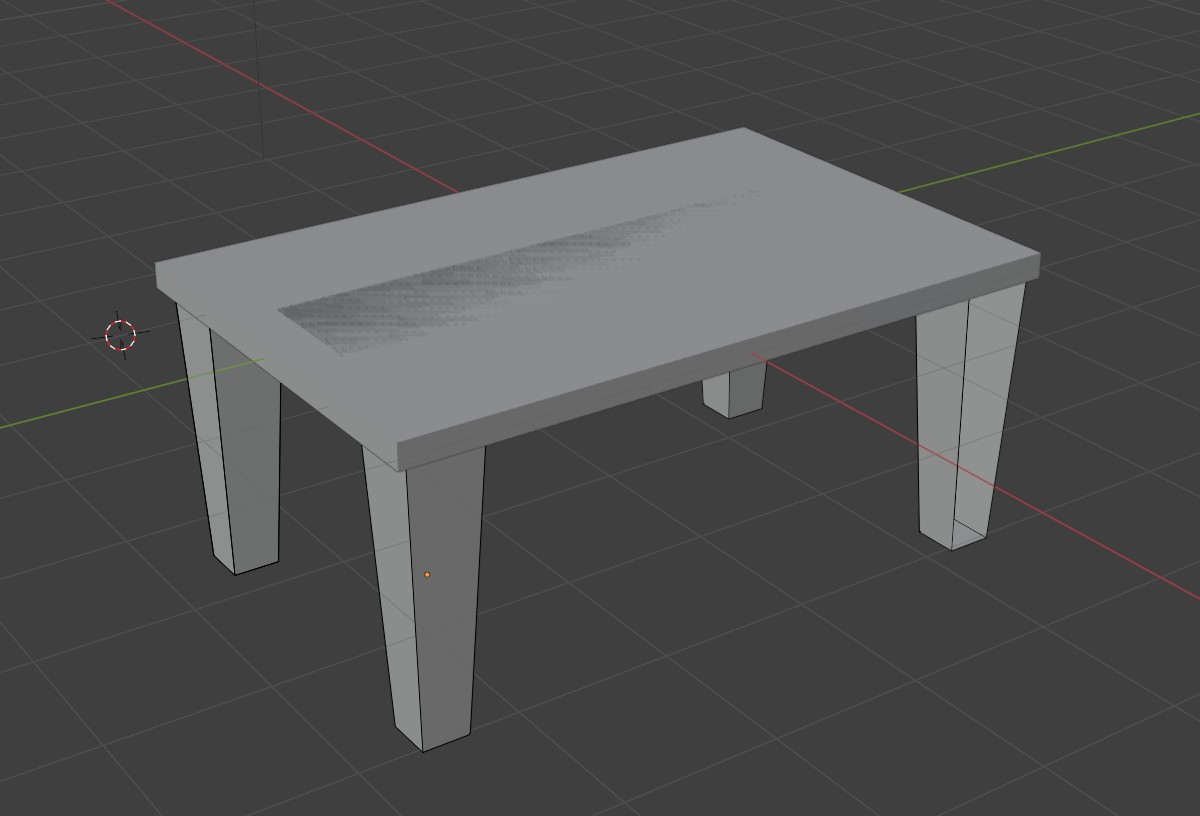 The 4 legs go straight down at an angle. The table was my first and only idea to make an inorganic object.